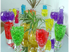 | 一、球狀吸水樹脂的性能和指標: 產品名稱:高分子吸水樹脂(簡稱SAP) 化學名稱:聚丙烯酸鈉鹽樹脂 二、用途 1、香料載體:用該樹脂吸收香料,可保持香味持久,且可反復使用,廣泛用于汽車內、房間內固體空氣清新劑、衛生間芳香除臭劑等,是芳香類日用化學品的理想原料。 2、無土栽培:用于室內花卉及觀賞性植物的無土栽培,能延長花期的開放時間。將植物置于吸飽水和營養液之后的吸水樹脂里即可實現。 3、醫療衛生行業:可以吸收藥液,緩慢釋放,可滅殺蚊蟲、蟑螂等有害病蟲,是藥物緩釋劑的理想載體。 4、身體保健:在浴桶里放入點水晶球,可對人體有接觸按摩作用,同時緩釋所需的藥物,能對人體起到舒筋活血的功效。 5、裝飾品、工藝品:因為其獨特的球形狀,其吸水后外觀如水晶般,晶瑩剔透,觀賞性極佳,可用作裝飾品和工藝品制造。 6、玩具:還可以用于制作各種膨脹玩具。 我公司座落在山東省淄博市淄川區城南鎮興隆村西首張博路(205國道)東500米, 山川路西200米,交通十分便利。我公司是生產高分子聚合物的專業廠家,有近十年的生產歷史,我公司具有雄厚的技術力量和水平較高的自主研發能力,不斷研究開發新產品,不斷提高企業的市場競爭力。我公司生產設備先進,工藝技術一流,生產過程嚴格控制,并配備現代化的實驗室和現代化的實驗檢測設備,對產品生產全過程進行嚴格檢驗,產品質量一直在同行業處于領先水平。總經理張啟漢熱忱歡迎講稿諸位客戶蒞臨指導工作、洽談業務。